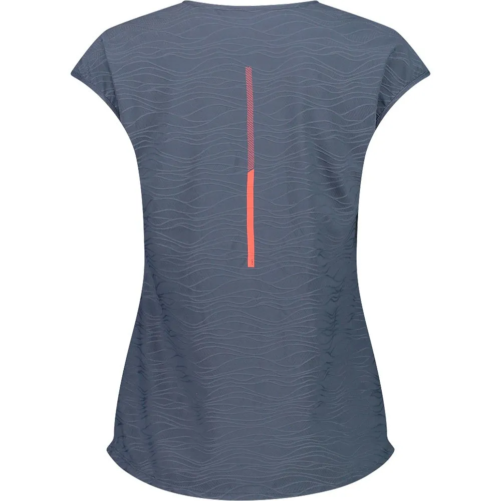 Damska koszulka z elastycznej dzianiny z technologią Dry Function, która pozwala na natychmiastowe odparowanie potu i wilgoci oraz naturalną termoregulację ciała, pozostawiając ciało suche.
