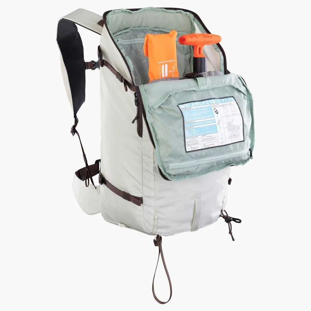 Bezpieczeństwo w górach jest najważniejsze, a Summit 30L jest wyposażony w dedykowaną, szybko dostępną komorę lawinową. Ta niezbędna funkcja umożliwia natychmiastowe wyjęcie łopaty i sondy w nagłych wypadkach, a wewnątrz znajduje się przejrzysty plan awaryjny, który zapewnia szybką reakcję. Główna komora jest inteligentnie zaprojektowana z dostępem od tyłu, co pozwala dostać się do sprzętu nawet wtedy, gdy narty lub snowboard są przymocowane z przodu, dzięki czemu nigdy nie musisz kłaść systemu nośnego plecaka w śniegu.
