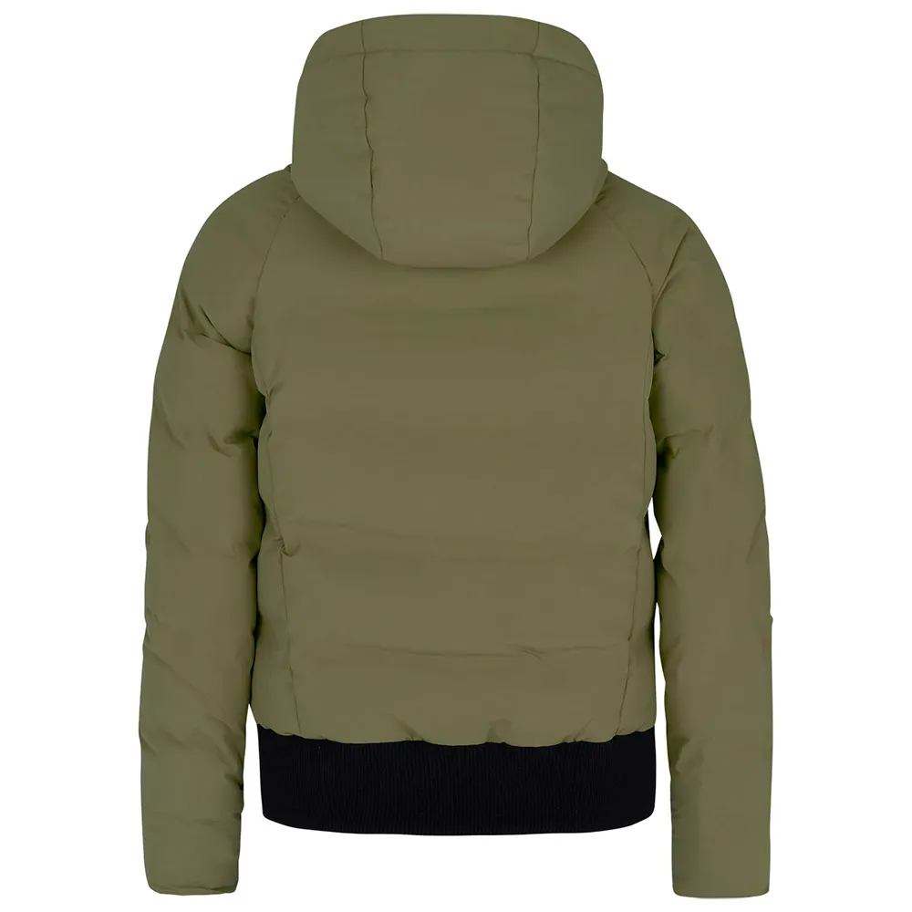 Pikowany, jednokolorowy design jest szykowny i elegancki, podobnie jak sznurek ściągający w stałym kapturze.