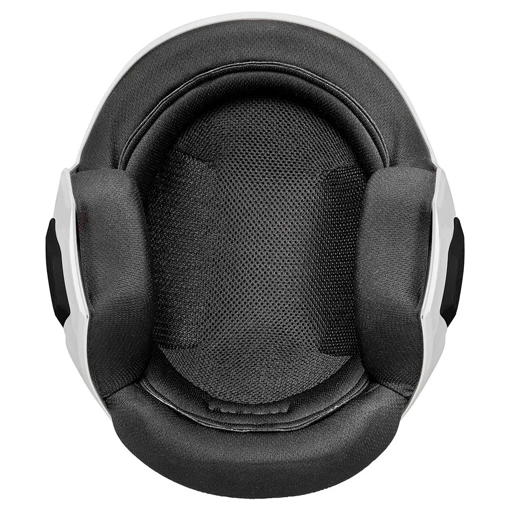 Kask wyścigowy z certyfikatem FIS jest opcjonalnie wyposażony w odpinaną osłonę podbródka.
