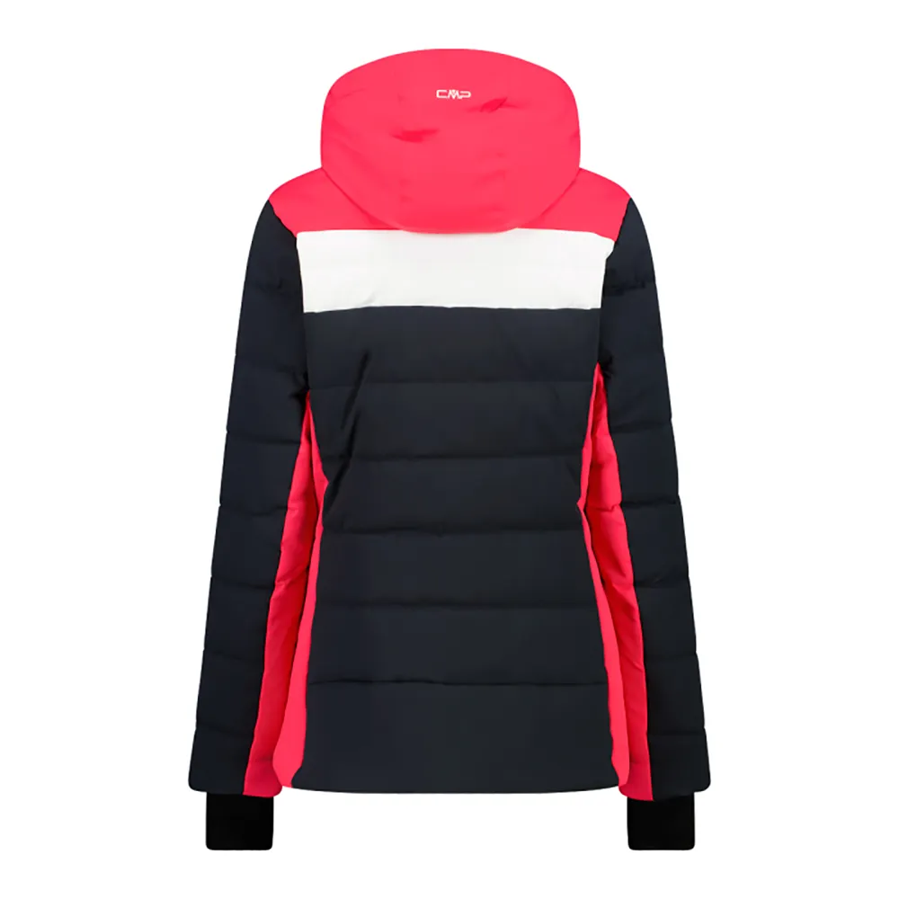 Jaqueta de esqui com stretch mecânico e capuz destacável, acolchoada com isolamento Feel Warm Flock, uma fibra sintética especial que pode manter o corpo aquecido mesmo em condições húmidas.