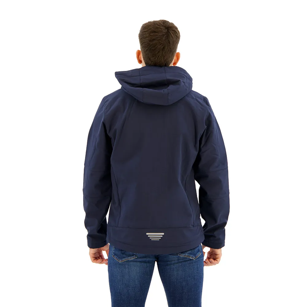 Casaco softshell masculino com capuz removível, concebido para proteger do mau tempo.