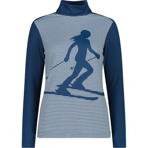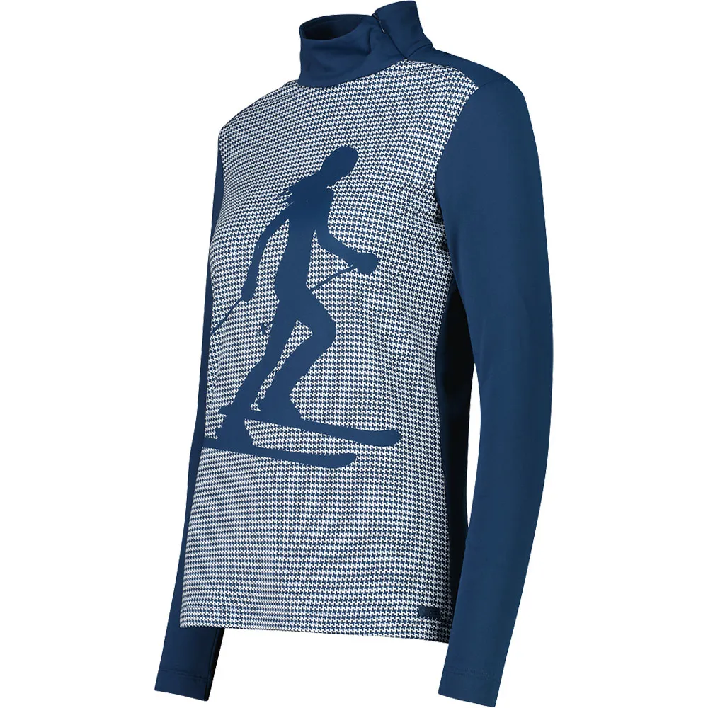 Esta gola alta feminina combina funcionalidade e estilo com um toque gráfico que remete a uma atmosfera de montanha.