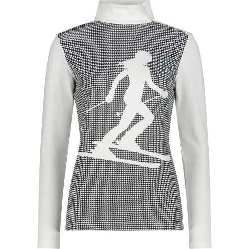 Esta gola alta feminina combina funcionalidade e estilo com um toque gráfico que remete a uma atmosfera de montanha.