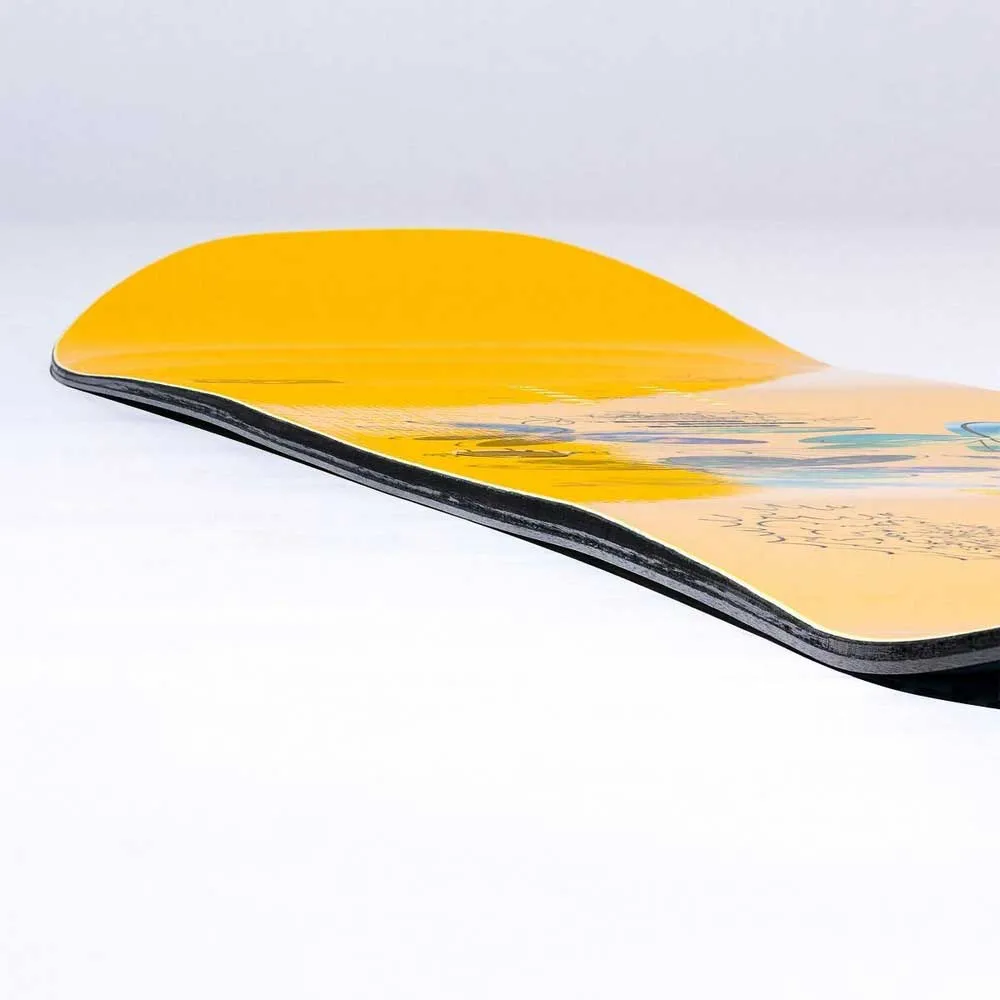 Ela tem um formato twin arredondado, um flex amigável e um contorno híbrido camber C2e, o híbrido rocker/camber perfeito.