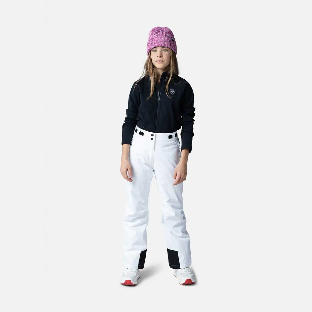 As calças de esqui Rossignol para meninas apresentam uma estrutura impermeável e respirável para repelir condições tempestuosas e isolamento leve em todo o corpo para maior aquecimento.