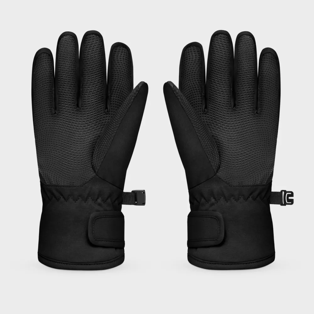 - Punhos ajustáveis com velcro e cordão elástico para prender as luvas aos pulsos ou à jaqueta