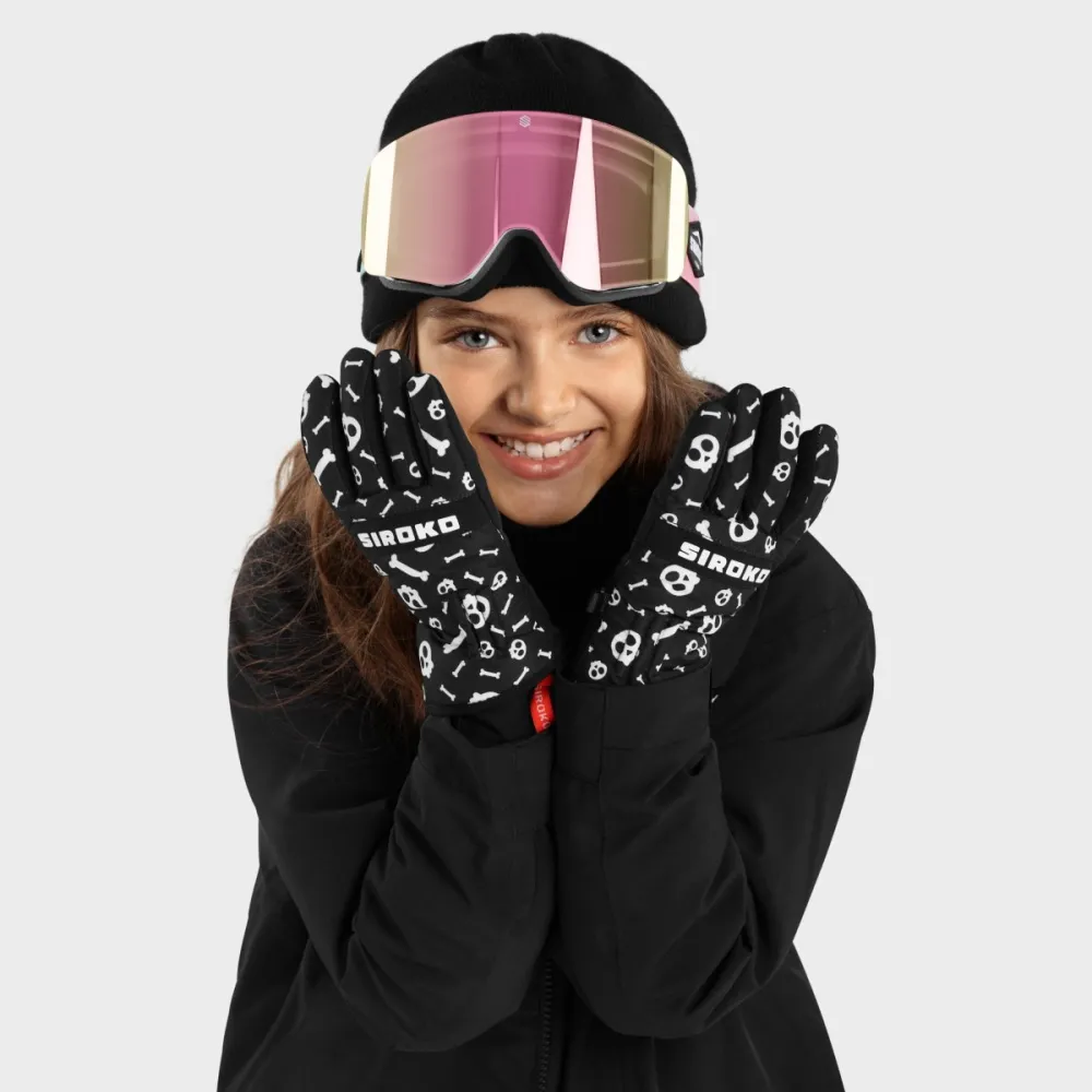 As luvas Skull protegem contra neve e frio graças ao tecido coreano Hipora® de três camadas e ao isolamento sintético 3M™ Thinsulate™.