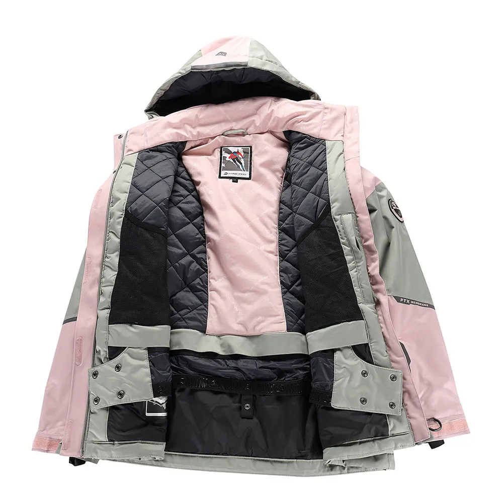 Jackan har en normal passform som ger bekväm rörelsefrihet, vilket gör den idealisk för skidåkning, snowboardåkning och lättare vandringar.