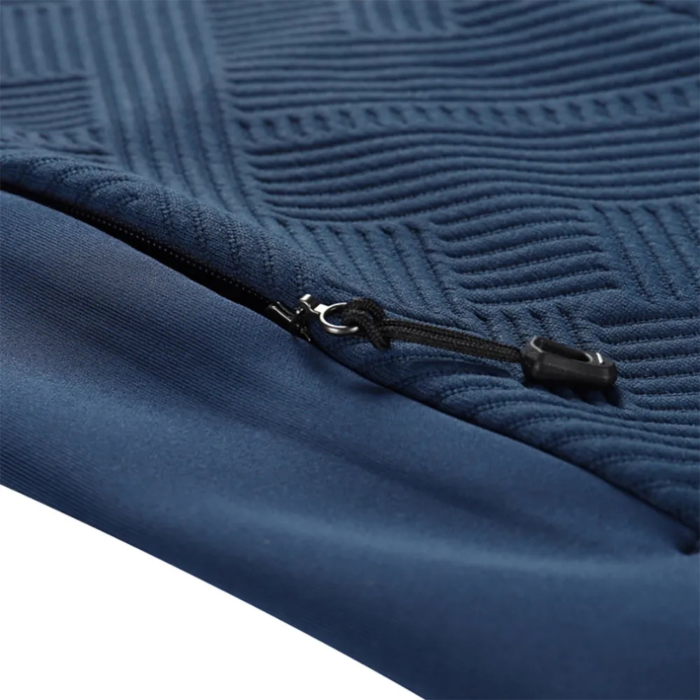 lång kontrasterande dragkedja, hakskydd, fickor totalt 2, framficka med dragkedja, tryck på framsidan.