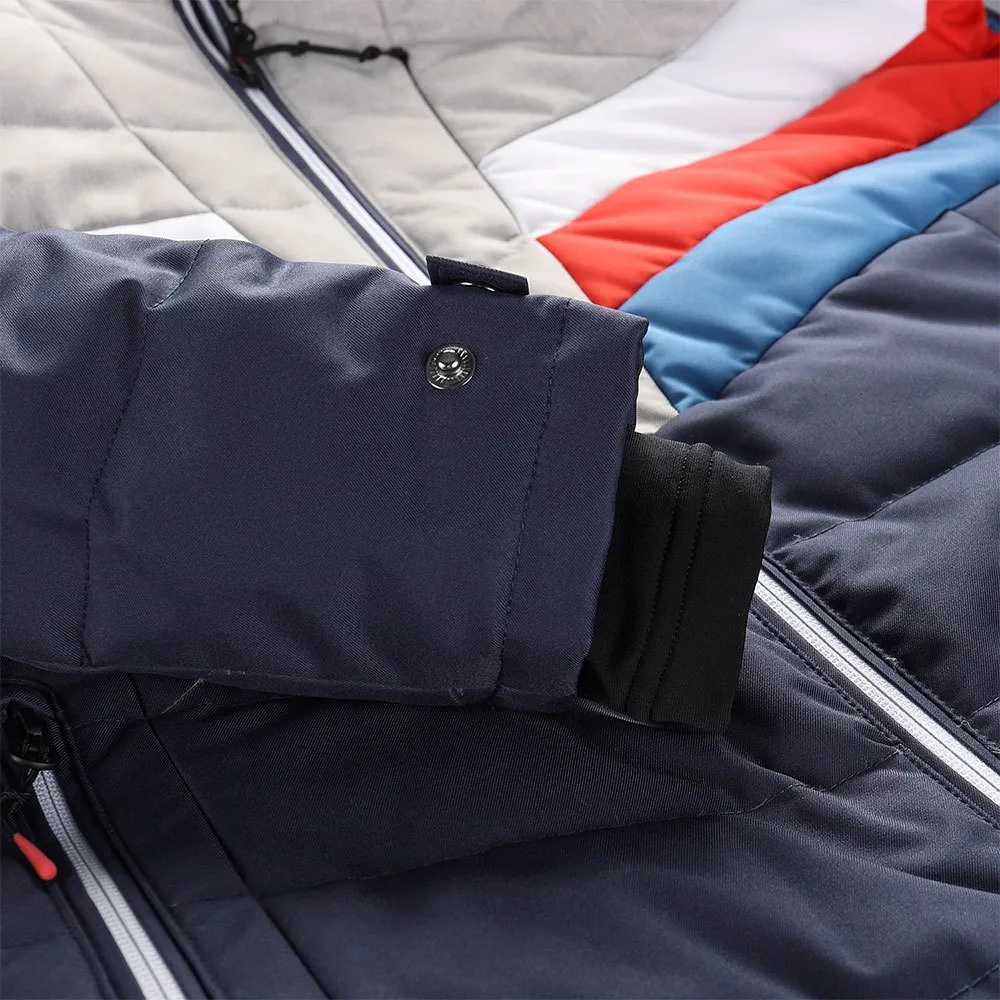 Rör dig fritt: Jackans stretchtyg möjliggör ett fullt rörelseomfång, vilket säkerställer att du kan röra dig fritt på backarna utan att känna dig begränsad. De artikulerade armbågarna och kilformade armhålorna förbättrar rörligheten, vilket gör att du kan prestera på topp.