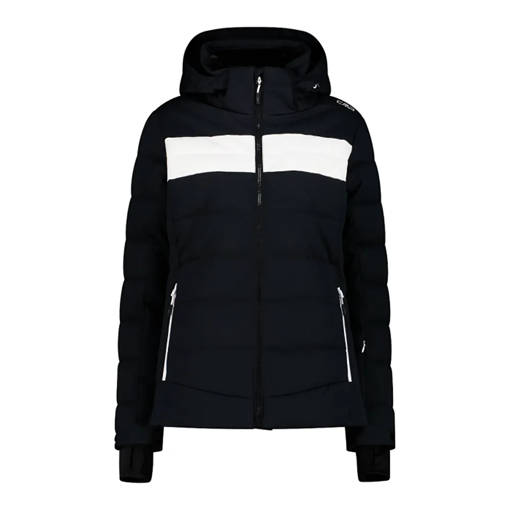 Skidjacka i mekanisk stretch med avtagbar huva, vadderad med Feel Warm Flock-isolering, en speciell syntetfiber som kan hålla kroppen varm även under våta förhållanden.