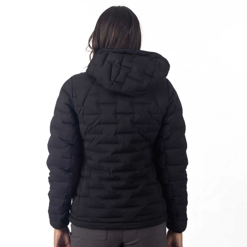 Luna Stretch Down Hooded Jacket är en mycket komprimerbar full-zip jacka med huva, speciellt designad för kvinnor med ansvarsfullt producerat dun och stretchtyg konstruerat för vardagsäventyr. Den vattenavvisande finishen och vindtäta stretchtyger, tillsammans med en fodrad 3-panels huva med dragsko och ståkrage, ger maximal värme och full täckning. Ytterligare funktioner inkluderar lårlång passform för utökad täckning, samt en bröstficka med dragkedja och framfickor.