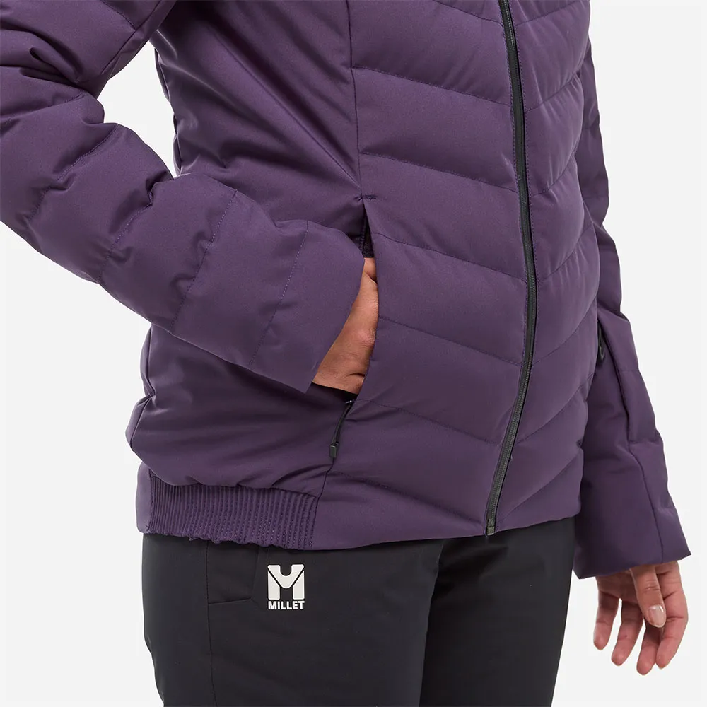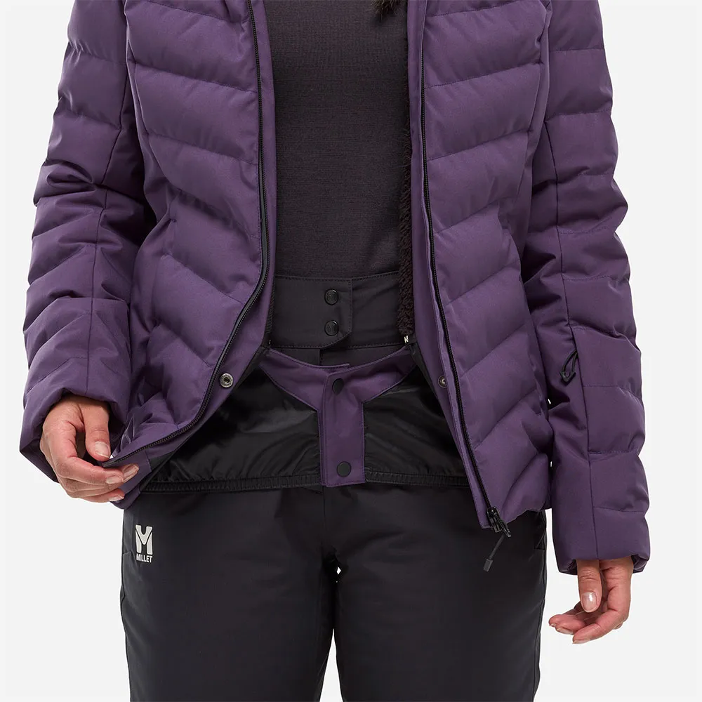 Ge dig ut i backen med stil med MILLET Brevent Peak-jackan. Denna livfulla, smickrande skidjacka kombinerar den eleganta dunlooken med allvädersprestandan hos återvunnen Repreve® syntetisk isolering. Ett 20K/20K vattentätt, tvåvägsstretchskal håller dig torr och låter dig röra dig fritt, medan ett högluggat fleecefoder ger mysig värme. Fullpackad med skidklara funktioner som snölås, justerbar huva och dedikerade fickor för liftkort och skidglasögon, erbjuder den en perfekt, stilren passform för dina fjälläventyr