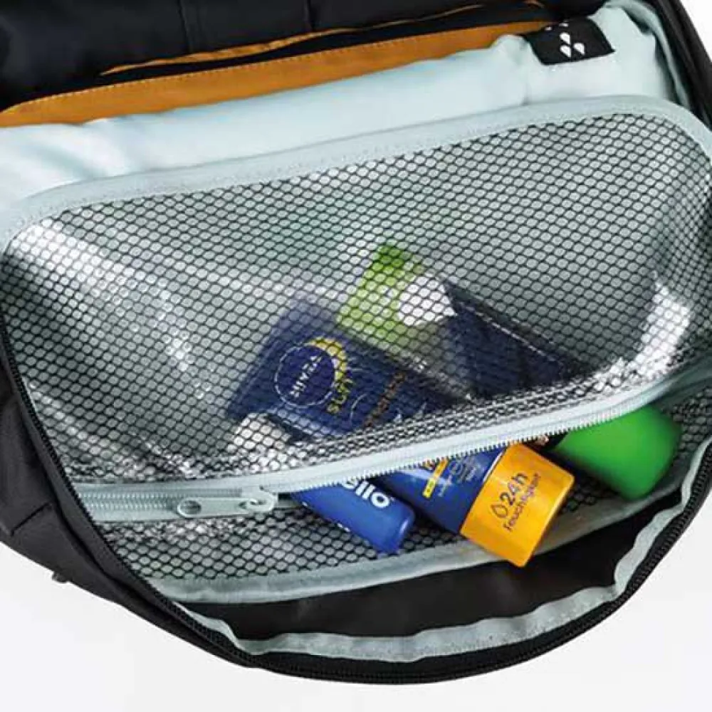 Ryggsäcken kommer med ett nät för att förvara hjälmen
