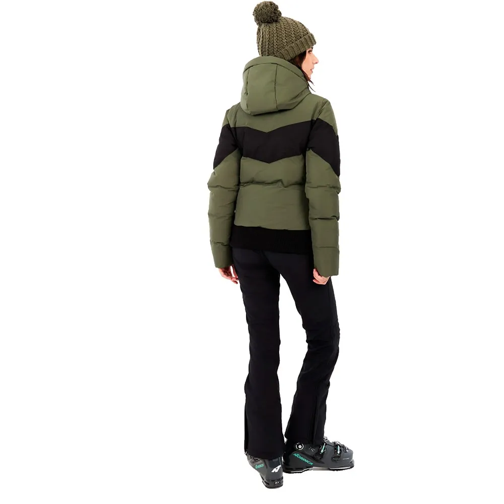 Det integrerade snölåset i midjan håller snön ute, även när du carvar, och jackan har smarta detaljer som en liftkortsficka och en gogglesficka.