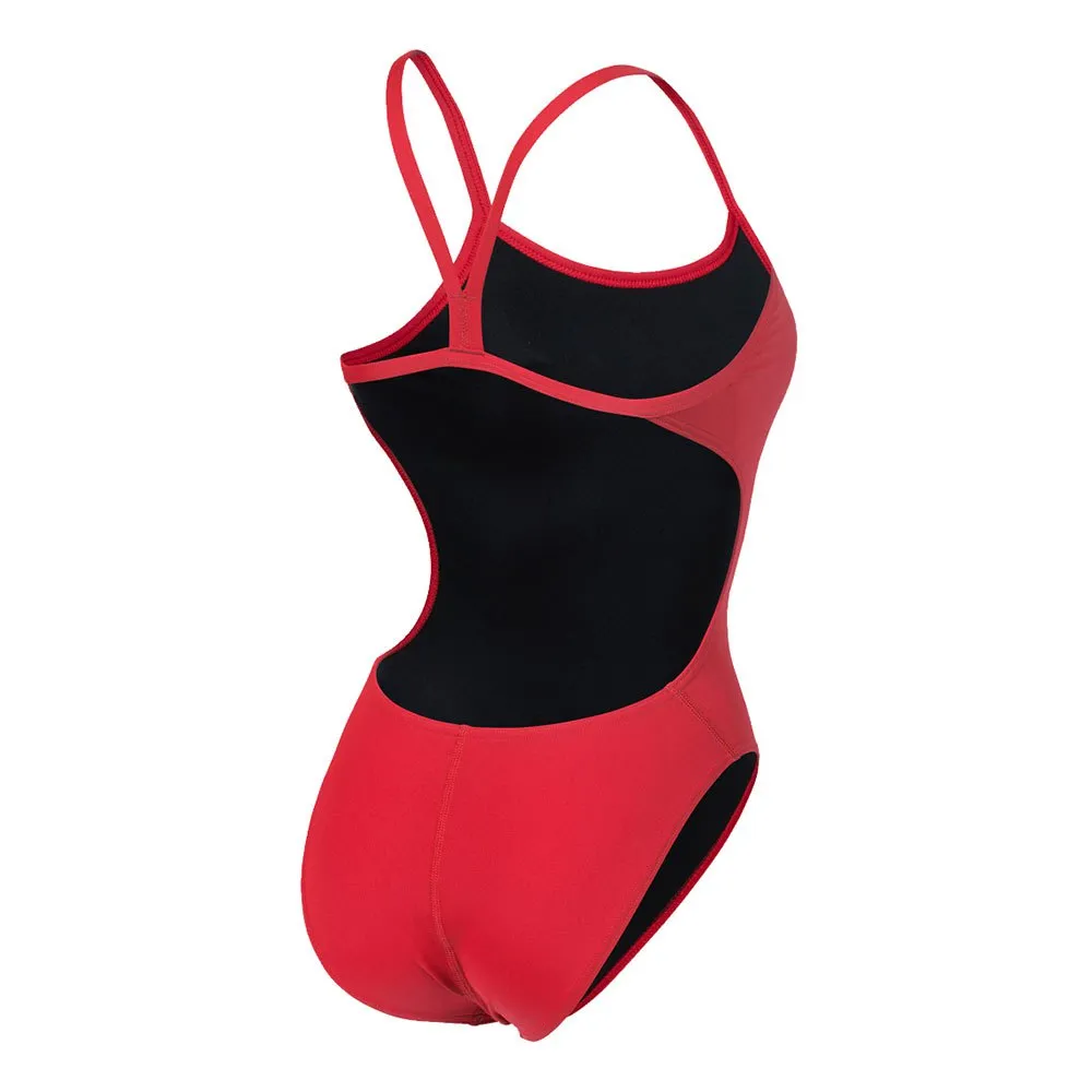 Åben ryg-badedragt med tynde stropper og et højt skåret ben for maksimal glideevne.