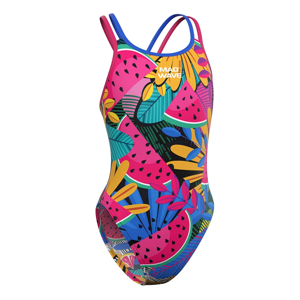 - åben ryg, tynde dobbelte stropper giver ekstra bevægelsesfrihed for armene og en følelse af lethed i vandet.