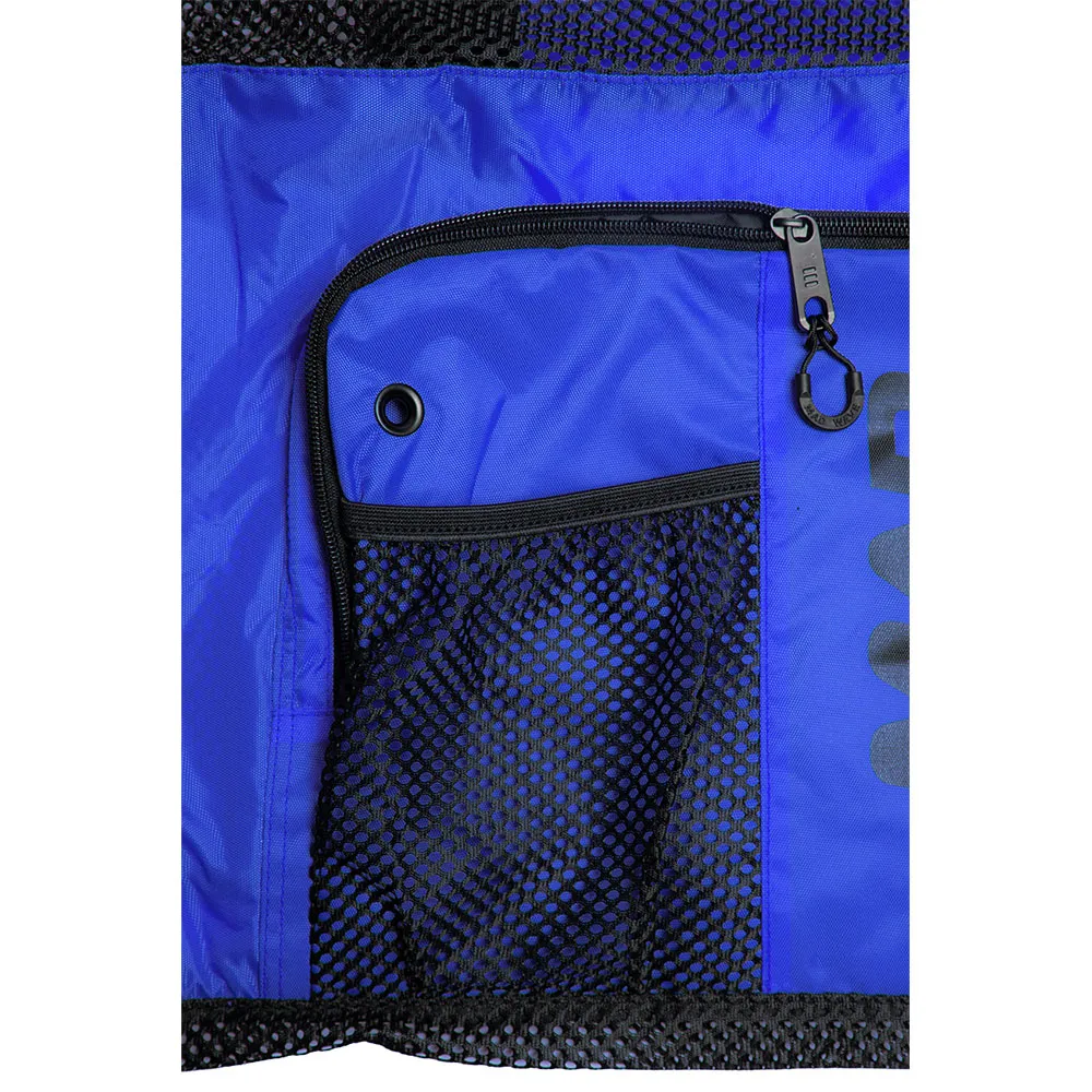 Der er en stor lynlåslomme med netindsats foran, der nemt kan rumme klipklappere, svømmebriller og kasketter.