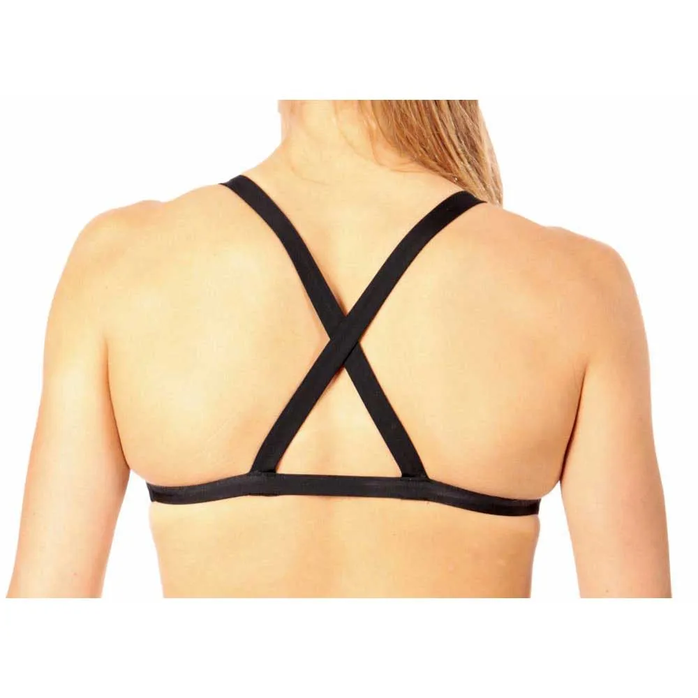 Mako Sunkissed bikini top med krydsede stropper på bagsiden, der tilbyder æstetik og god vedligeholdelse. Denne top kombinerer kvaliteterne af en træningsbikini (soliditet, komfort og støtte) med æstetik af en strandmodel.