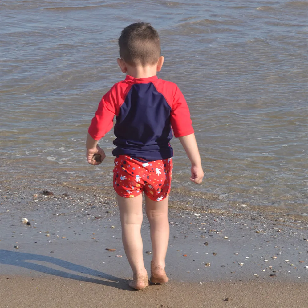 Apolo-boxeren er designet til drenge, der lever og ånder for vand. Uanset om han er en erfaren svømmer eller lige er begyndt, vil disse shorts give ham den støtte og komfort, han har brug for for at få mest muligt ud af sin tid i poolen. Det hurtigtørrende stof betyder mindre ventetid i fugtige shorts og mere tid til at nyde det sjove. Han kan hoppe direkte fra poolen til andre aktiviteter uden at føle sig tung eller ukomfortabel.