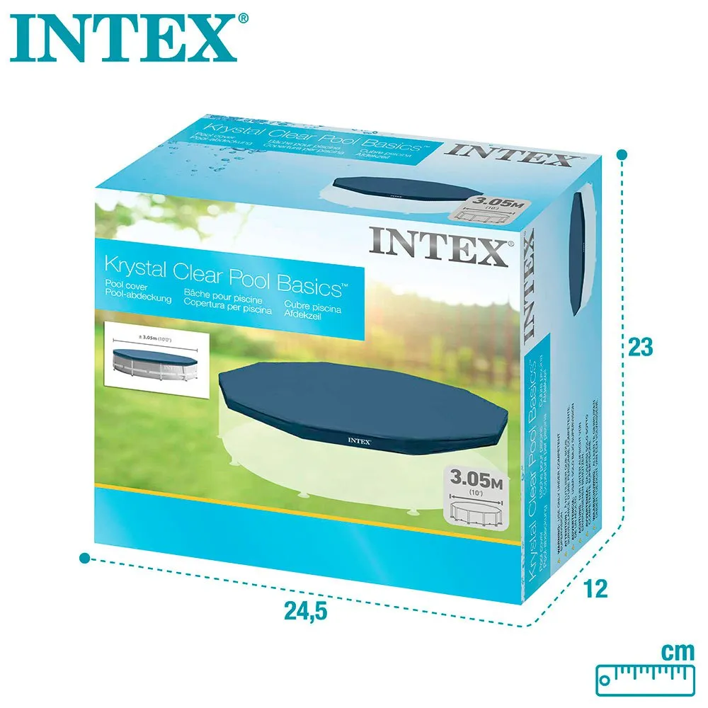 Intex abnehmbare runde Schwimmbadabdeckung aus der Metal & Prisma Frame Reihe.