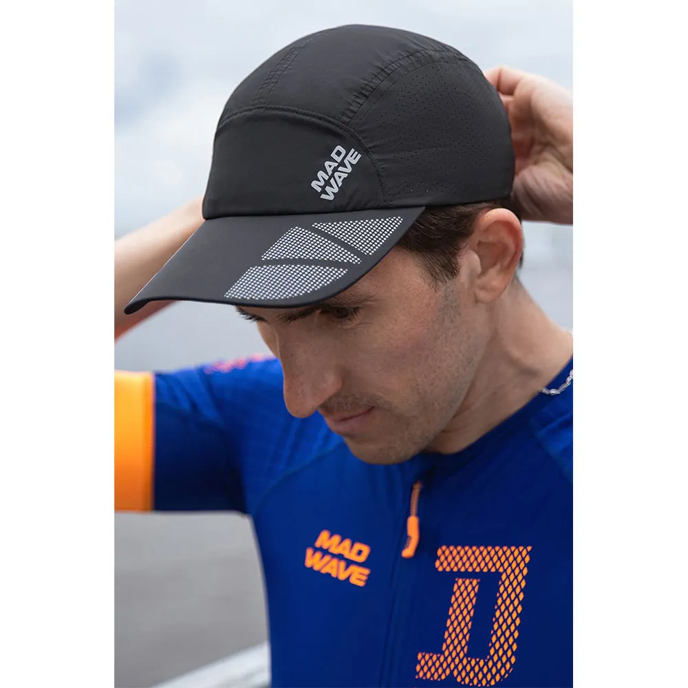 Eine ultraleichte kompakte Kappe mit abgerundetem Schirm zum Laufen oder Training an der frischen Luft - ein stilvolles Accessoire für Outdoor-Enthusiasten. Diese Kappe besteht aus leichtem, schnell trocknendem Material mit Perforationen für eine bessere Luftzirkulation. Das Innenfutter leitet Feuchtigkeit effektiv ab und sorgt für Komfort während intensiver Workouts. Der Klettverschluss ermöglicht eine einfache Anpassung der Passform. Reflektierende Elemente auf dem Schirm und das Mad Wave-Logo sorgen dafür, dass Sie im Dunkeln sichtbar sind.