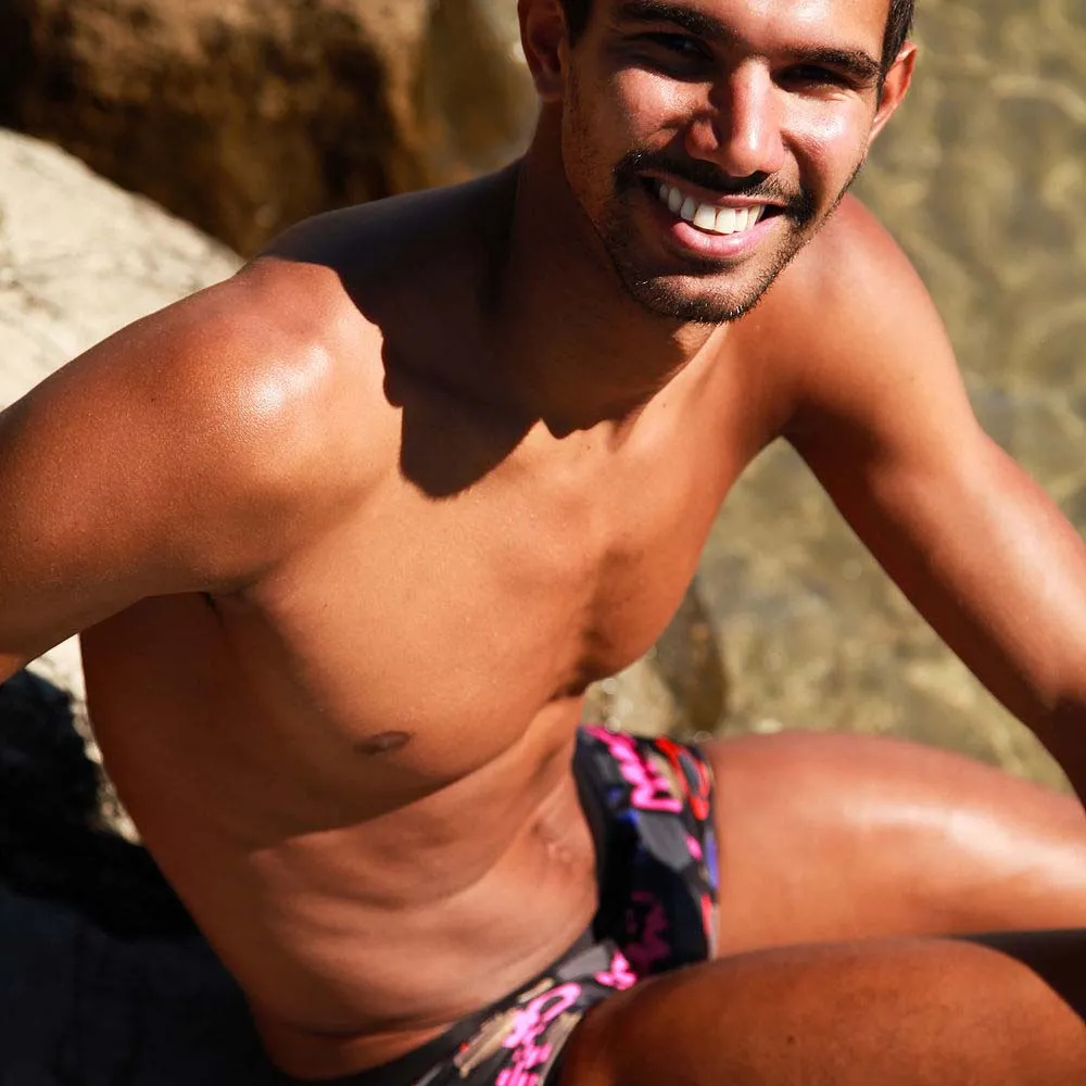 Der Shorty und Trunk sind von unserem Endurotek Material, einer Vereinigung von Polyester und PBT, das ist extrem chlorbeständig. Der Druck wurde ausgiebig zu garantieren Farbechtheit im Laufe der Zeit getestet. Aus diesem Grund ist unsere Badebekleidung eine bemerkenswerte Lebensdauer hat, sowohl in Bezug auf Chlorbeständigkeit und auch Lebhaftigkeit der Farbe.
