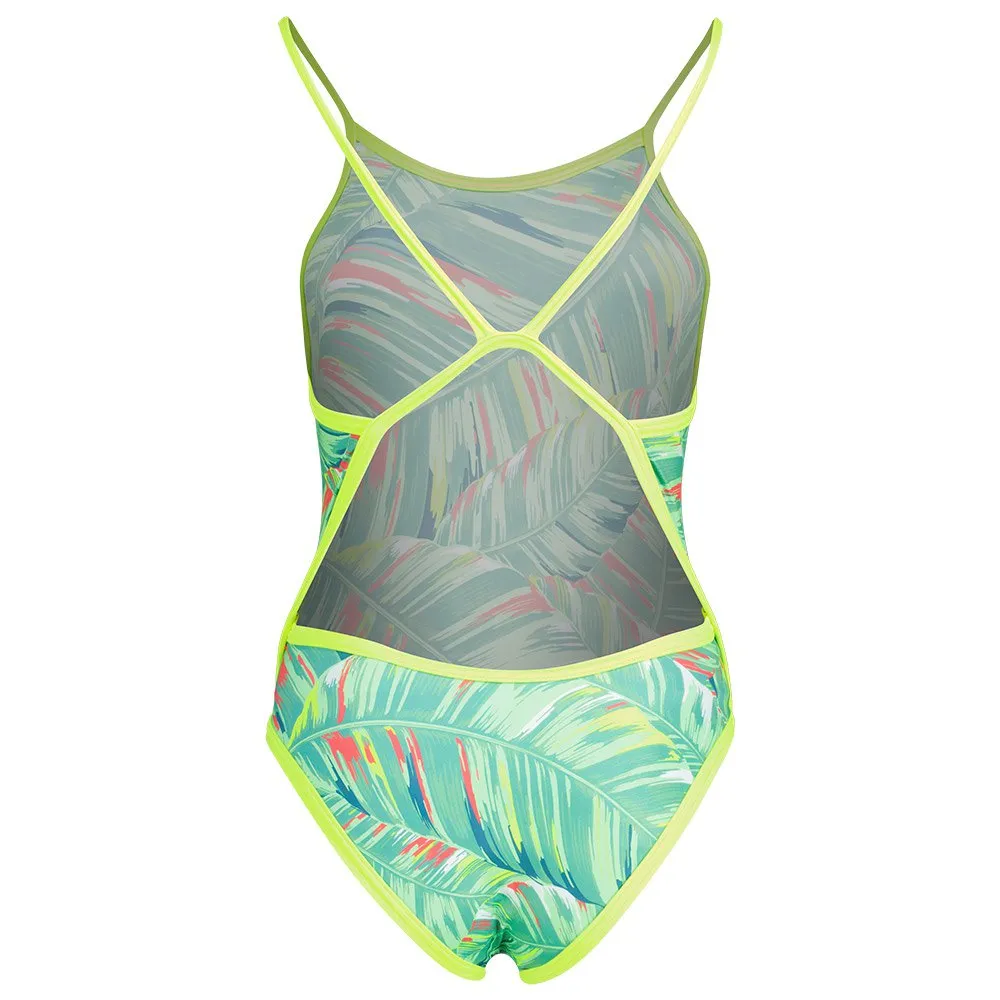 Dieser bequeme Badeanzug zeichnet sich durch einen stilvollen Schnitt und schöne, lebendige Farben aus. Bitte beachten Sie, dass die grünen und neonfarbenen Träger in natura möglicherweise leuchtender wirken als auf Fotos. Die Passform des Badeanzugs wird oft als klein beschrieben, daher wird für eine perfekte Passform empfohlen, eine Nummer größer zu bestellen. Seine hochwertigen Träger entspannen sich bei wöchentlichem Gebrauch angenehm.