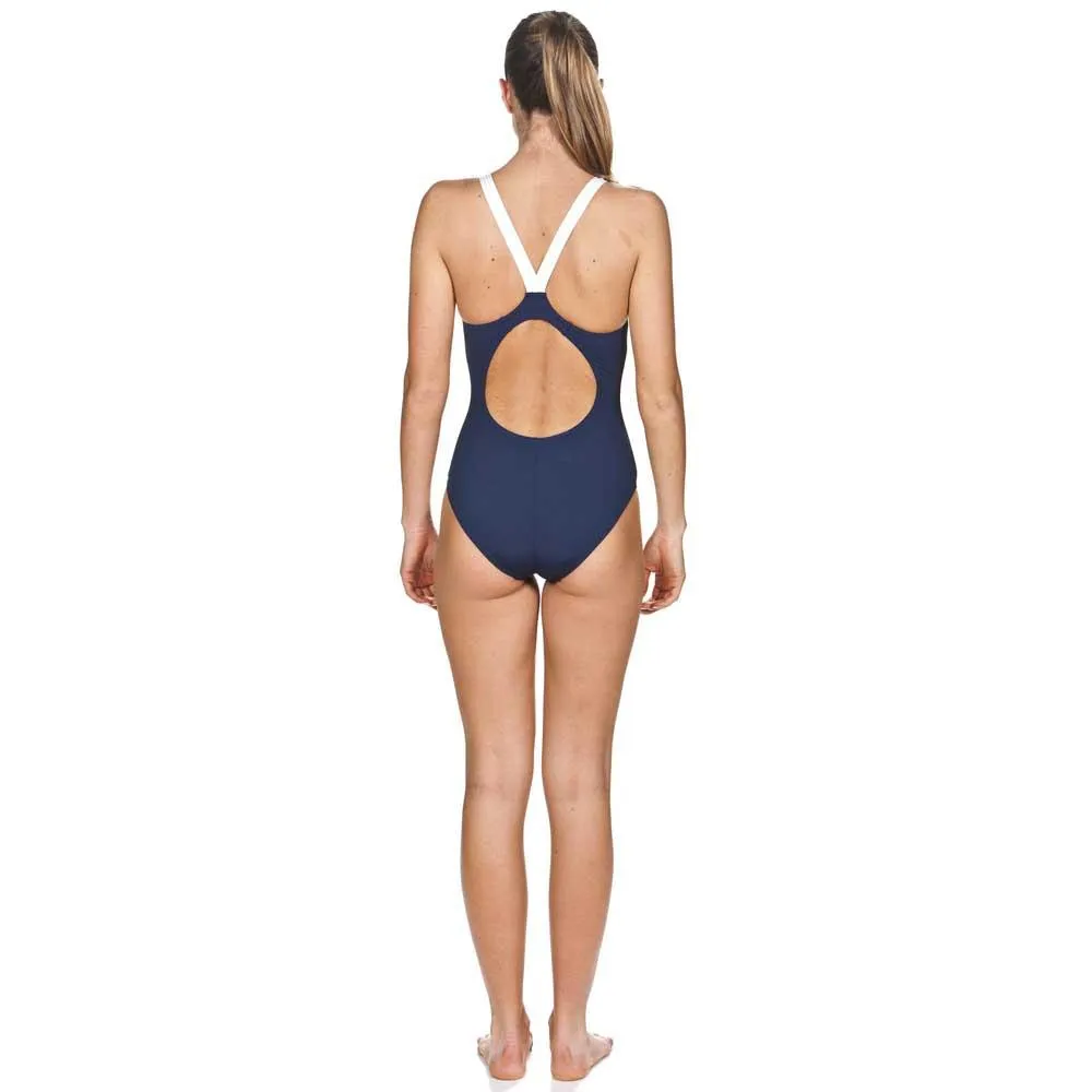 Cut to mould perfectly to your body for undistracted swimming, this one-piece has a round cutout at the back and sturdy straps for unrestricted mobility and upper body-support. Feel confident and covered with a medium-cut leg.