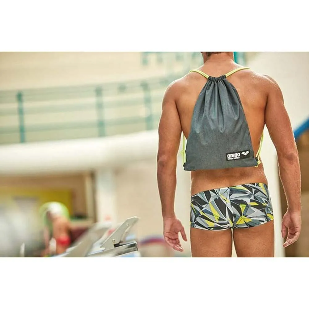 Stylish drawstring bag for swim gear and training equipment.