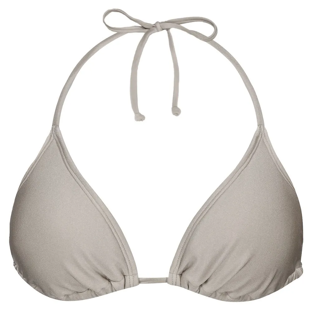 The defining feature of this stunning bikini top is its exquisite material. The Isla Triangle is made of plain shimmer fabric. This high-quality synthetic textile is designed to catch the sunlight beautifully, creating a subtle, luminous glow that enhances your sun-kissed skin. The shimmer is tastefully integrated, offering a chic and polished look without being overly flashy, making it a versatile choice for any waterside occasion.
