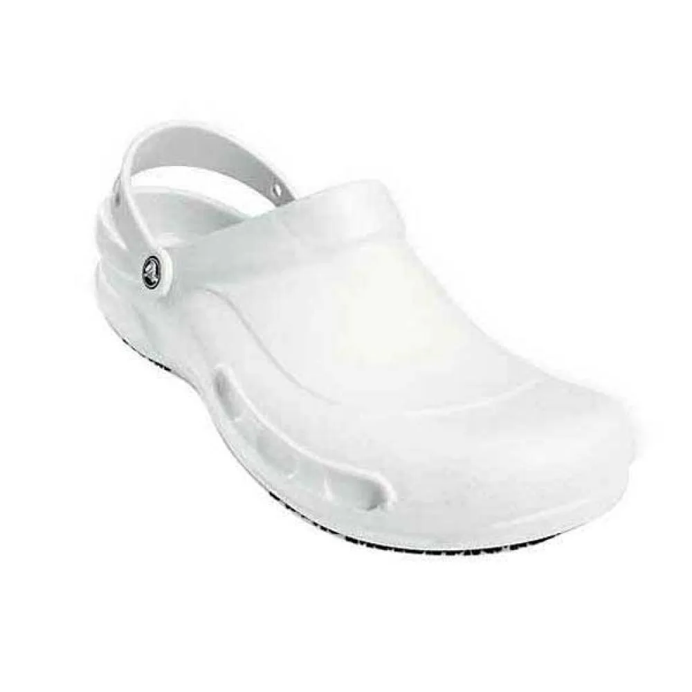 Comfortable, and made with food service, hospitality, and health care workers in mind. The Crocs? Bistro gives you all you need in an on-the-job shoe?from slip-resistance to extra protection at the toe.