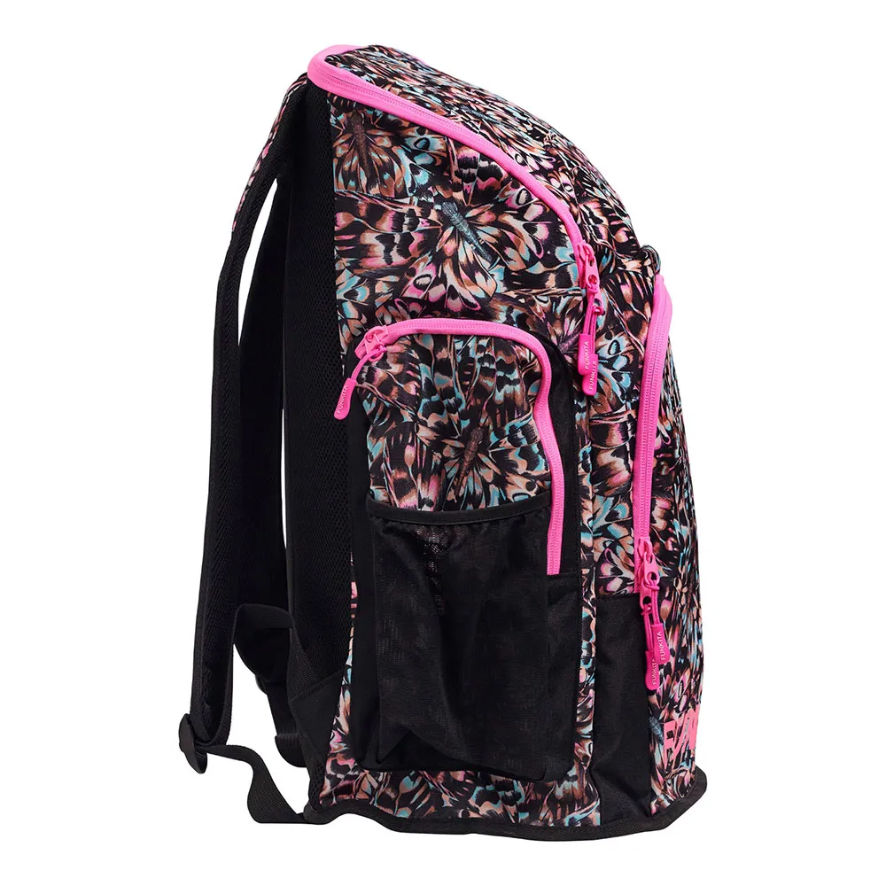 Up to 40L capacity with large main section and multiple internal pockets including a hidden fabric-lined goggles compartment.