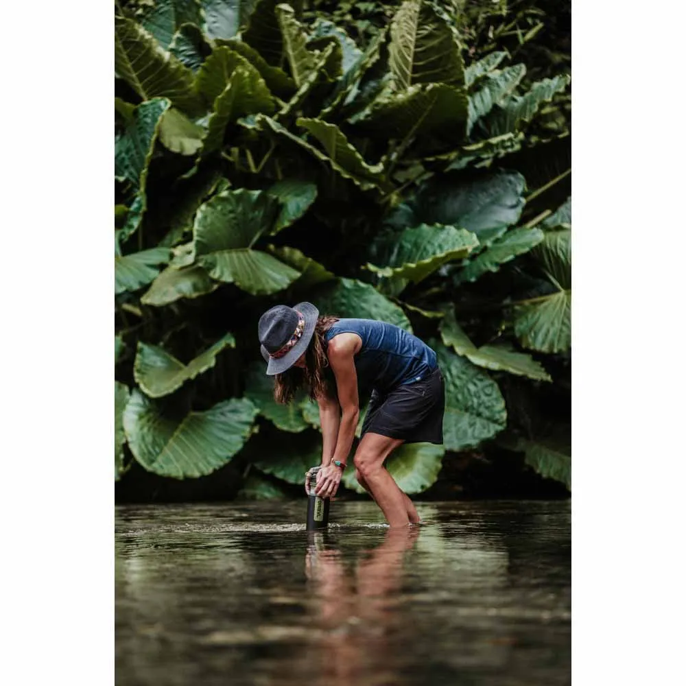 Simply fill the container with water from the river, well, or lake, or even from questionable taps while on vacation, screw on the filter insert, and push down - viruses, bacteria, pesticides, chemicals, heavy metals, and even microplastics are filtered out of the water, allowing you to enjoy pure drinking water no matter where you are in the world.