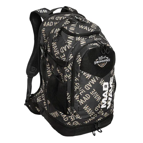 The MADWAVE Lane 32L backpack is the ultimate gear bag for athletes on the go. Master your organization with a multifunctional front pocket for goggles and paddles, a large ventilated compartment for up to two pairs of shoes, and a separate padded sleeve for a 13” notebook. Ventilated mesh inserts provide superior moisture control. For maximum comfort, chest and waist straps reduce back load and keep the bag secure. External mesh pockets, a side strap for a snorkel, and a carabiner for easy hanging complete this highly versatile backpack