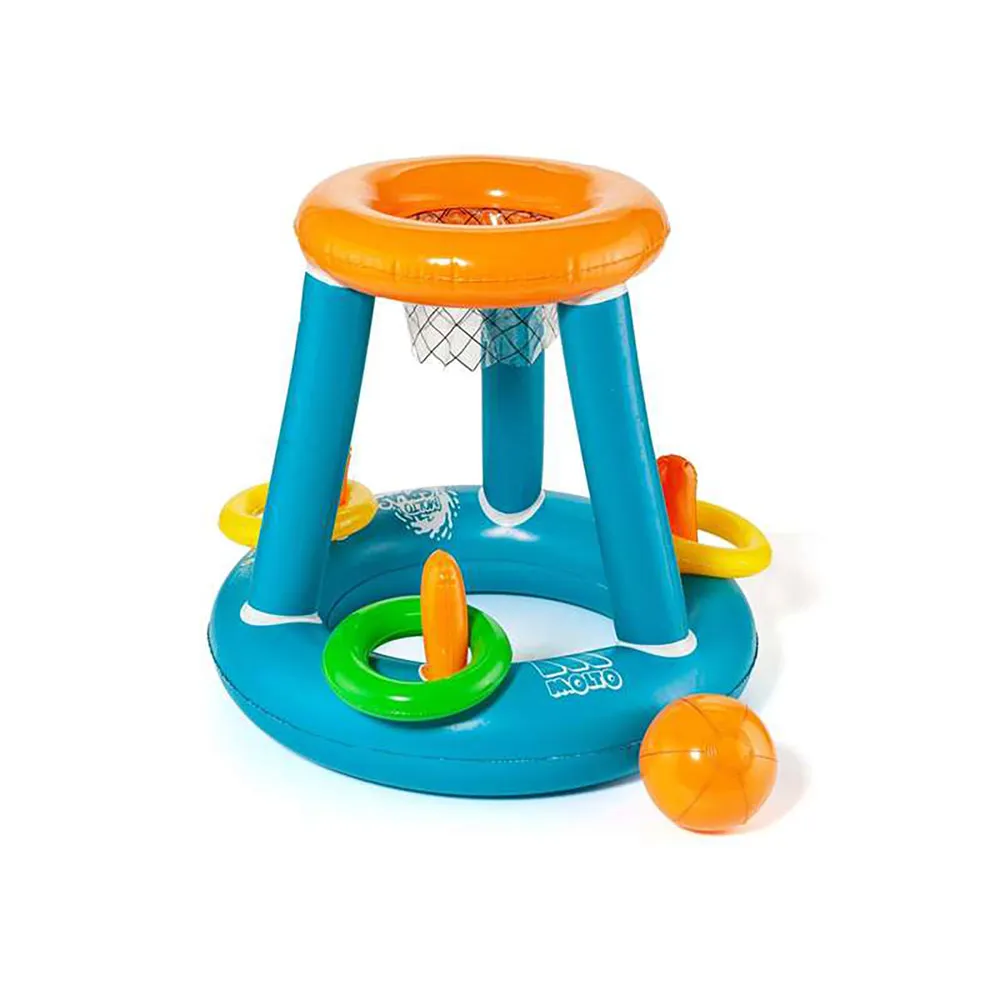 Includes an inflatable basketball and 3 rings.