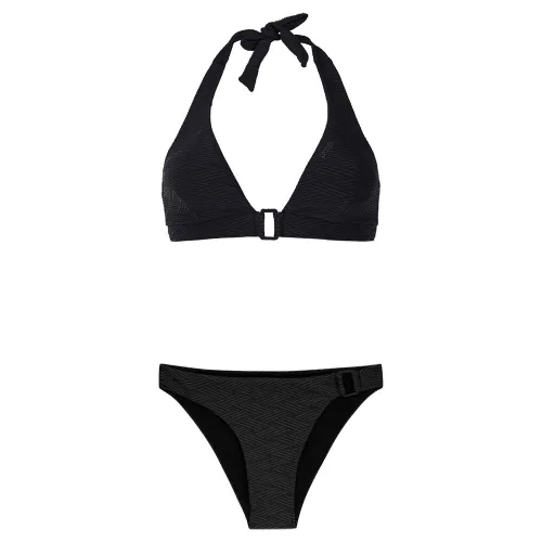 -Regular fit swimwear, Halter bikini top, Medium coverage, Buckle, Regular waist, Removable padding.