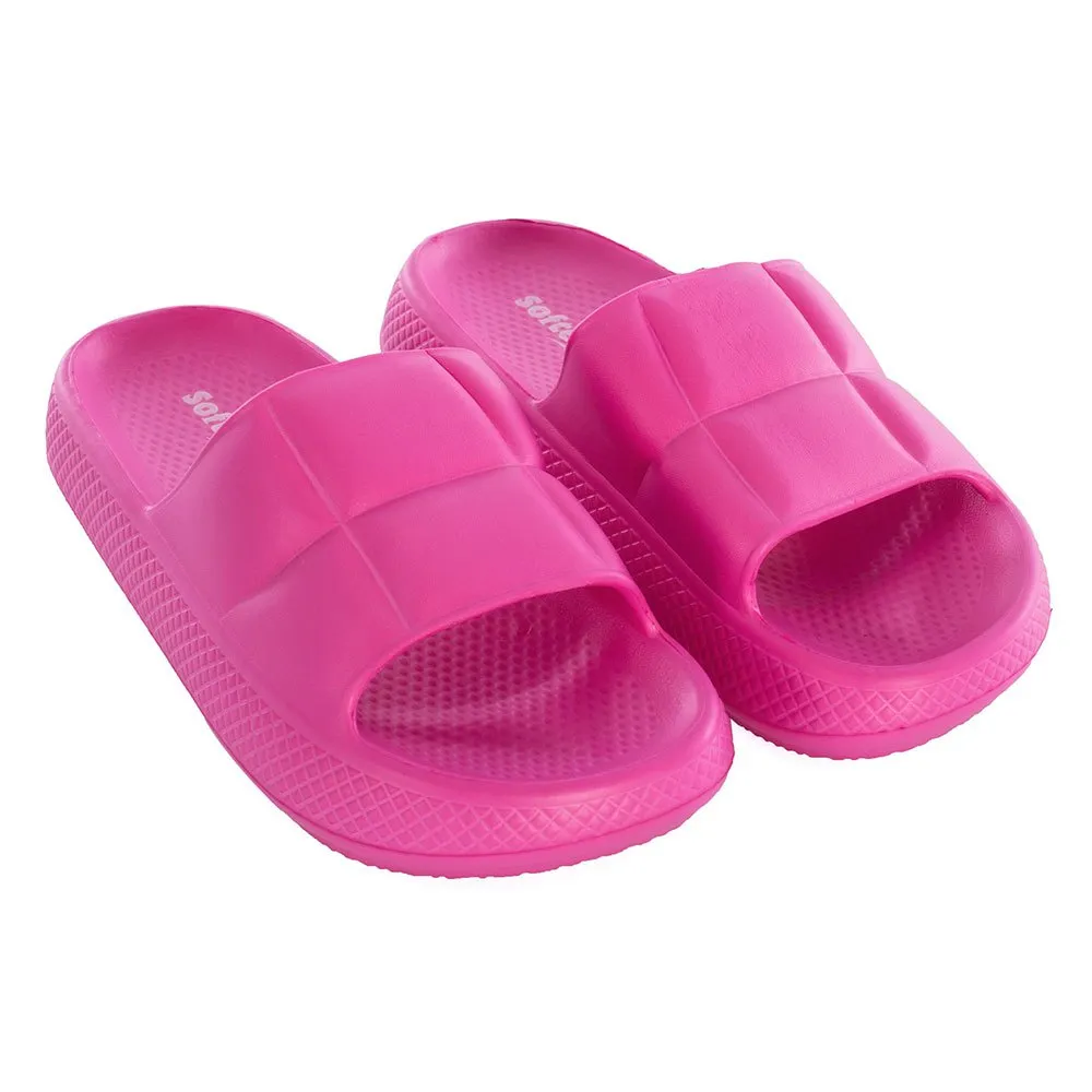 Step into cloud-like comfort with SOFTEE Bubble Gum slides. Experience the sensation of walking on air with an exceptionally soft, bouncy footbed designed for all-day arch support. The vibrant bubble gum color adds a playful pop to any summer outfit, from swimsuits to sundresses. Crafted from durable, water-resistant materials, these easy slip-on slides are perfect for the beach, pool, or everyday adventures. Ditch your old flip-flops and treat your feet to the ultimate blend of fun, style, and blissful comfort