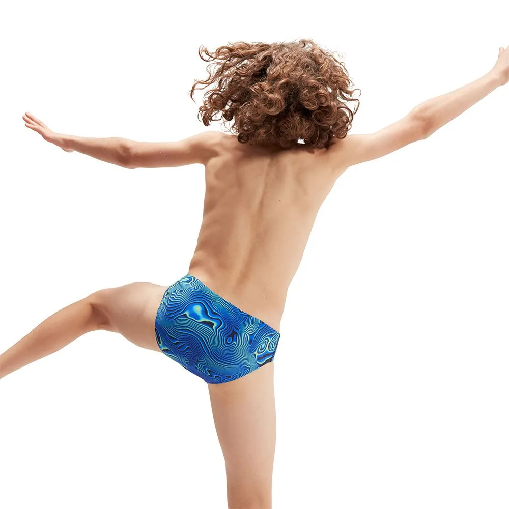 Command the pool like a titan of the deep wearing this mesmerising 6.5cm Brief, which features a hypnotic blue and green print inspired by underwater seascapes. Offering junior swimmers superb freedom of movement on every kick, the brief includes a drawstring waist for an adjustable fit and a front modesty liner for additional comfort and modesty. Made from our durable ECO Endurance+ fabric, it´s quick-drying and 100% chlorine resistant. Plus, one of the yarns in this fabric is made from 100% post-consumer waste, such as recycled plastic bottles.