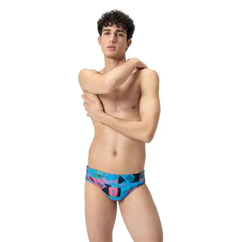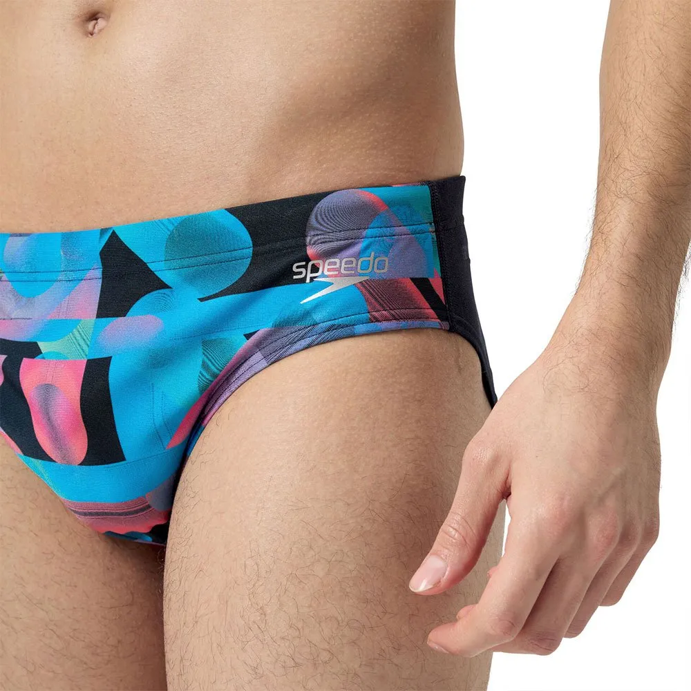Train hard in this eye-catching 7cm swim brief, with a colorful, high-contrast geometric print.
