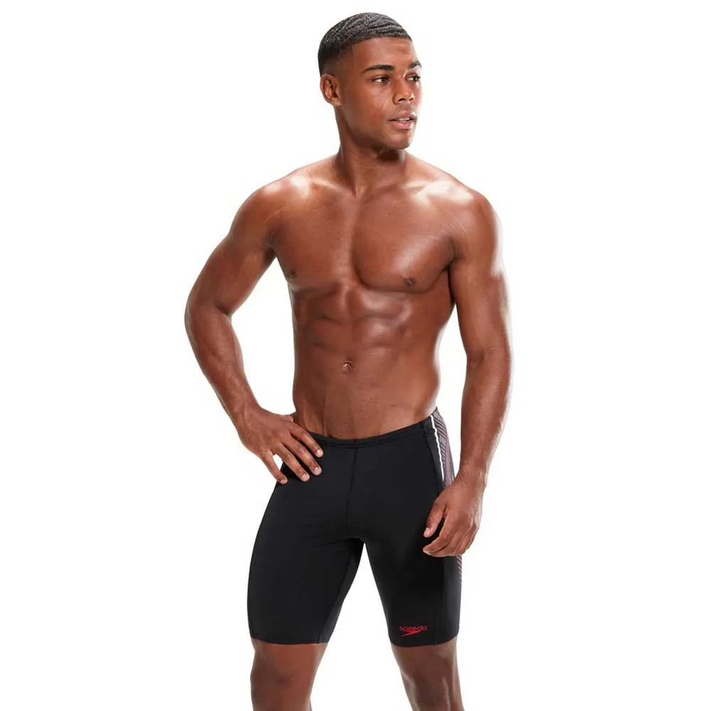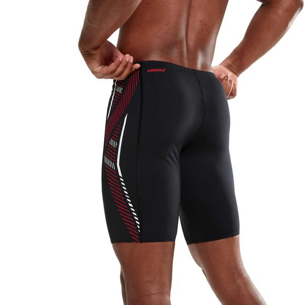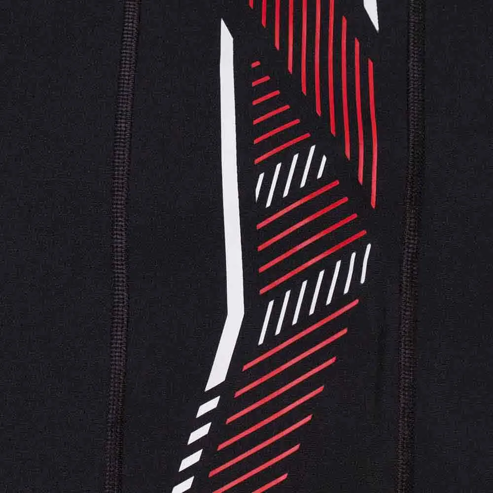 Look the part in training wearing the black Tech Jammer, featuring a geometric plastisol panel print in red and white. A power mesh rubberised liner ensures you feel comfortable and supported during your swim, while the drawstring waist allows for an adjustable fit. Designed to be durable and better for the environment, the jammer is made from our new ECO Endurance+ fabric, which is 100% chlorine resistant, quick-drying and made from 50% recycled materials.
