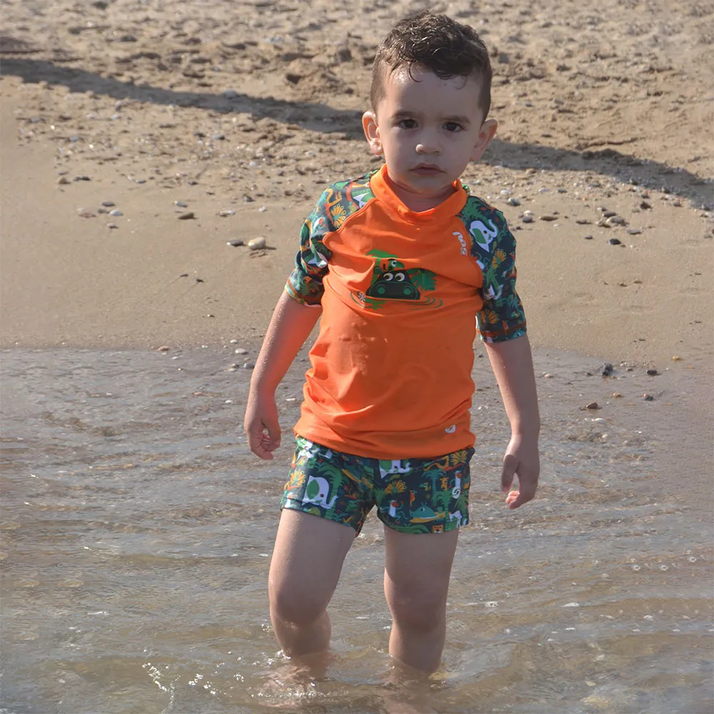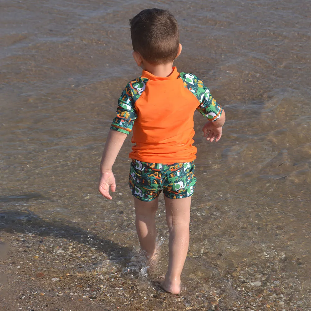 Sabemos que los trajes de baño para niños deben ser resistentes. El bóxer de natación salvaje RAS está construido para resistir los rigores del uso constante y los entornos hostiles. El tejido de alto rendimiento no solo es de secado rápido, absorbiendo rápidamente la humedad para mantenerlo cómodo y cálido después de nadar, sino que también es altamente resistente a los efectos dañinos tanto del cloro como del agua salada. Esto asegura que los colores vibrantes y la integridad estructural de los pantalones cortos duren temporada tras temporada. Además, la protección solar UPF 50+ integrada actúa como una barrera crucial, protegiendo su piel de los dañinos rayos ultravioleta durante los largos días de exploración bañados por el sol.