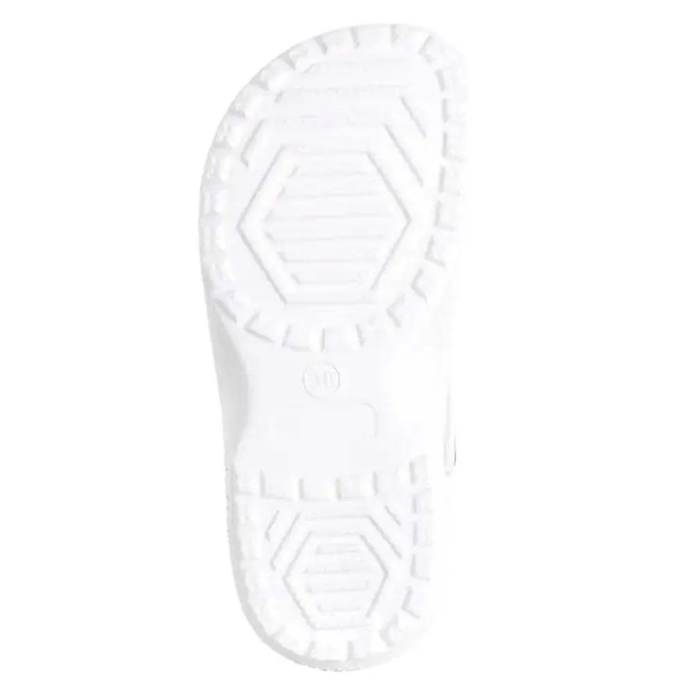 Construidos para el rendimiento y la durabilidad, estos zuecos cuentan con un empeine sintético de alta calidad que es a la vez resistente e increíblemente fácil de mantener. El material es resistente al desgaste, asegurando que tus zuecos luzcan geniales incluso con un uso regular. El estilo fácil de poner, sin sistema de cierre, ofrece la máxima comodidad, perfecto para esos momentos en los que necesitas levantarte y salir sin complicaciones. La característica más crítica para cualquier zapato versátil es su agarre, y el SOFTEE Hexagon destaca con su avanzada suela antideslizante. La banda de rodadura meticulosamente diseñada proporciona una tracción superior en una variedad de superficies, desde cubiertas de piscina mojadas hasta suelos interiores lisos, brindándote una pisada segura y tranquilidad en cada paso que das.