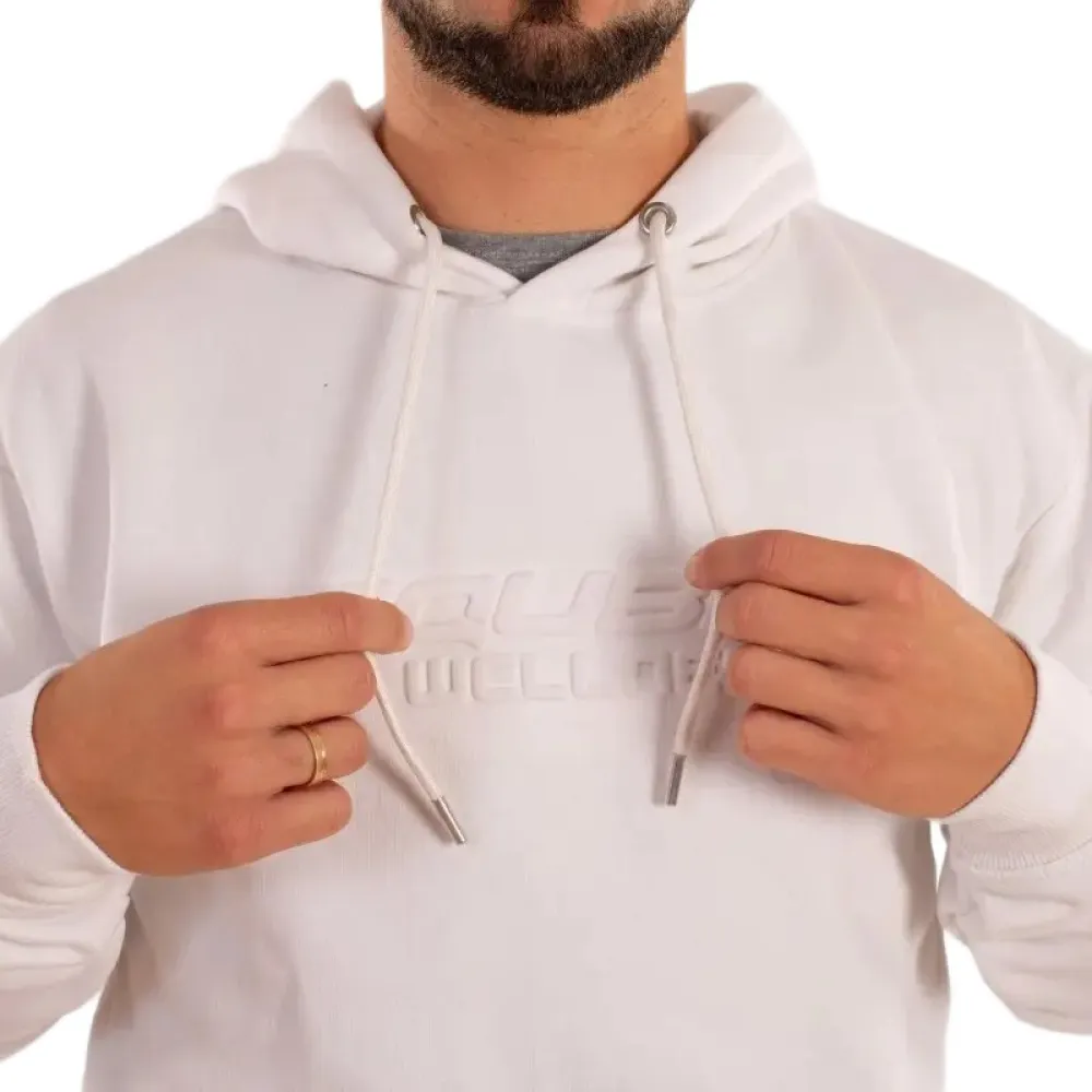 Sudadera con capucha confeccionada en tejido de algodón suave y cómodo. Presenta un diseño clásico con un bolsillo tipo canguro en la parte delantera y cordones ajustables en la capucha con extremos metálicos. El logotipo de la marca está grabado en relieve en el pecho, creando un efecto elevado que añade un estilo moderno y sofisticado.