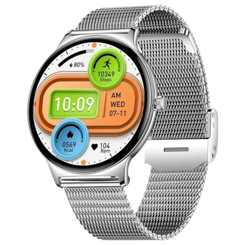 Colmi V89, hopeanvärinen, erittäin ohut 1.43 tuuman älykello, pitkäkestoinen akku ja metalliranneke.