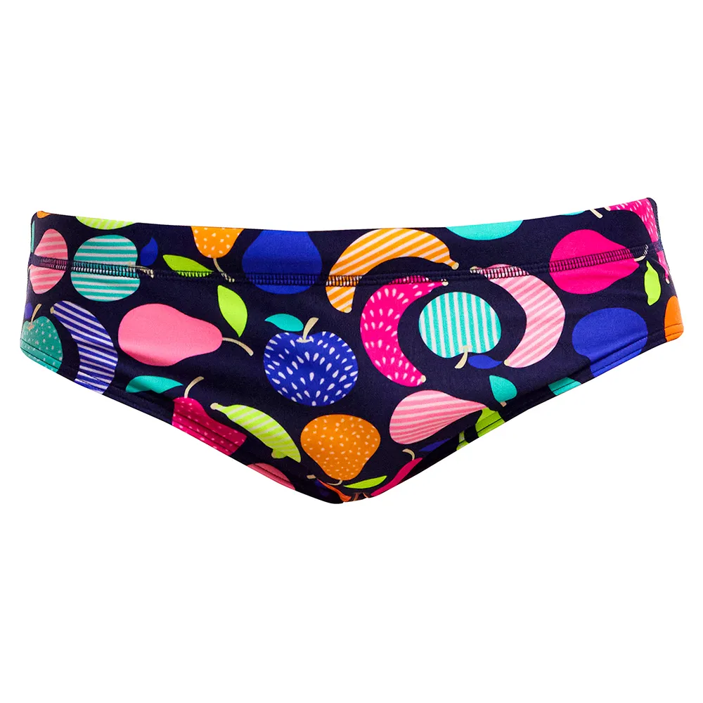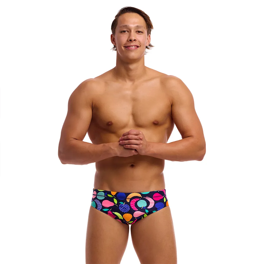 Hallitse rataa Funky Trunks Classic Brief -uimahousuilla, jotka ovat ykkösvalinta uimareille, jotka vaativat suorituskykyä ja persoonallisuutta. Nämä uimahousut on valmistettu poikkeuksellisen kestävästä, 100 % kloorinkestävästä kankaasta, ja ne säilyttävät kirkkaan värinsä ja muotonsa kestämällä kovia allaskemikaaleja ja UV-säteitä. Klassinen 8 cm:n sivuleikkaus tarjoaa täydellisen liikkumisvapauden, kun taas kiristysnyöri, etuvuori ja tasosaumat takaavat turvallisen, mukavan ja hankaamattoman istuvuuden. Erotu joukosta rohkeilla, ikonisilla printeillä, jotka antavat sinun ilmaista tyyliäsi ja sukeltaa veteen itsevarmasti