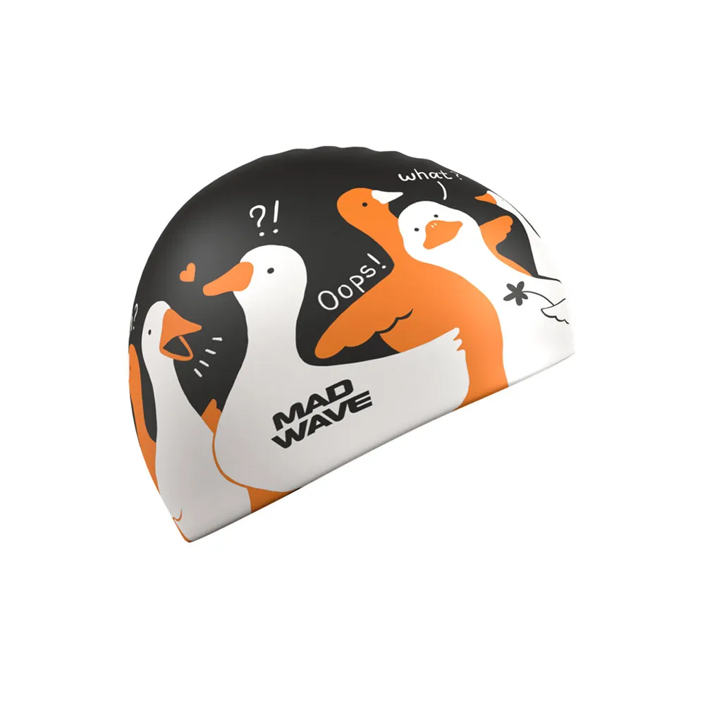 Silikoninen uimalakki Goose big hauskoilla hanhilla on suurempi koko (+5mm).