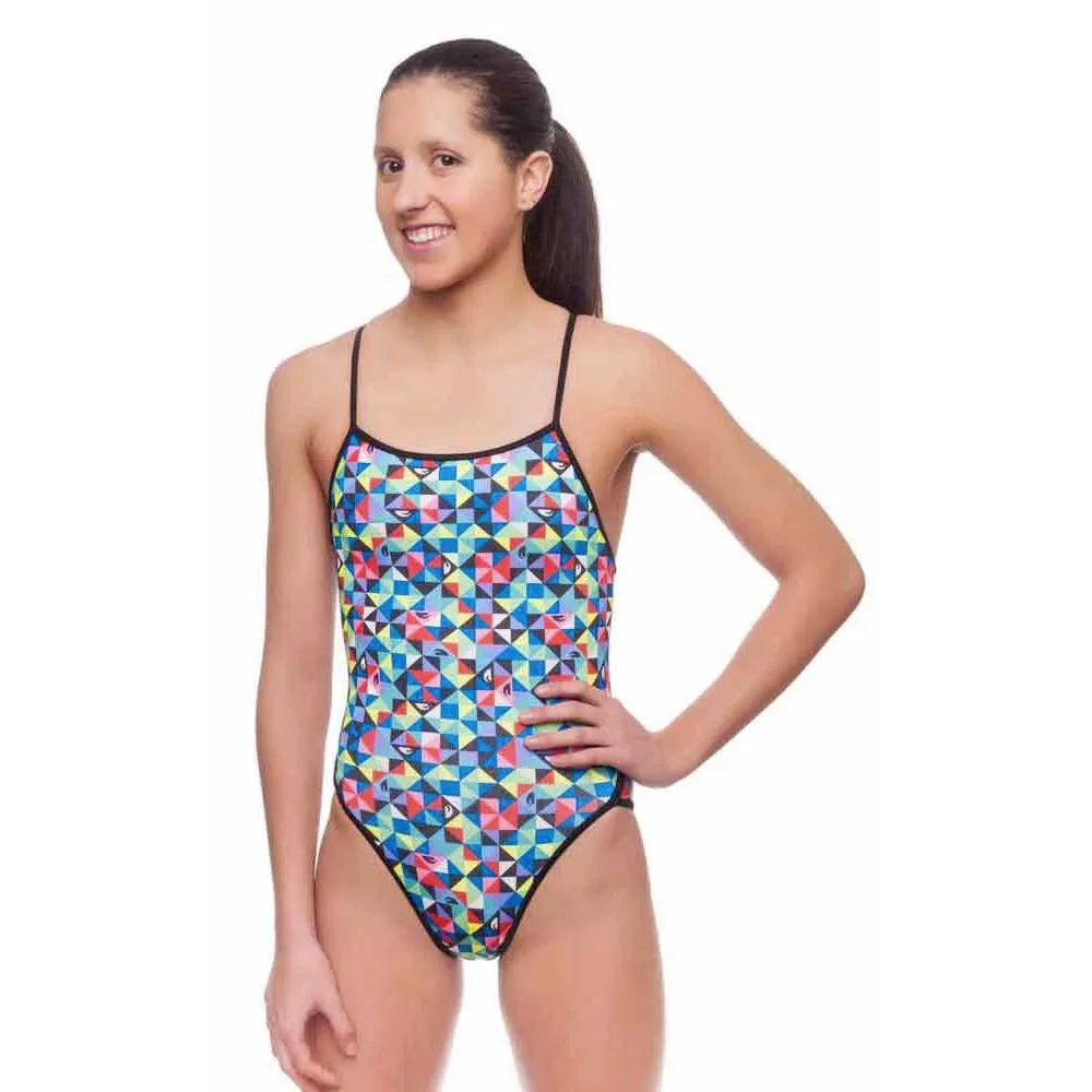 Tämä Turbo-puku on suunniteltu erityisesti uimiseen. Ohut hihnat tarjoavat täydellisen liikkumisvapauden ja joustavuuden, sopeutuen täydellisesti naisen kehoon. Se peittää vähemmän osan olkapäästä kuin leveän hihnan, jolloin vältetään ihon sävyjen kontrasti auringonvalon vuoksi. Tämä puku on valmistettu markkinoiden parhaasta kankaasta, jossa on kaksinkertainen etuvuori. Se kestää altaan klooria ja UV-säteitä. Ja tästä syystä sen värien voimakkuus pysyy muuttumattomana ajan myötä.