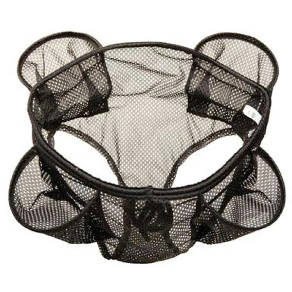 Uno slip con quattro bicchierini, in tessuto a rete, aumentano lattrito del nuotatore in acqua.